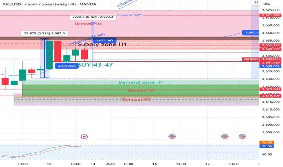 Label ที่มุมกล่อง: H4 Demand / H1 Supply + ราคาของ High/Low ของโซน