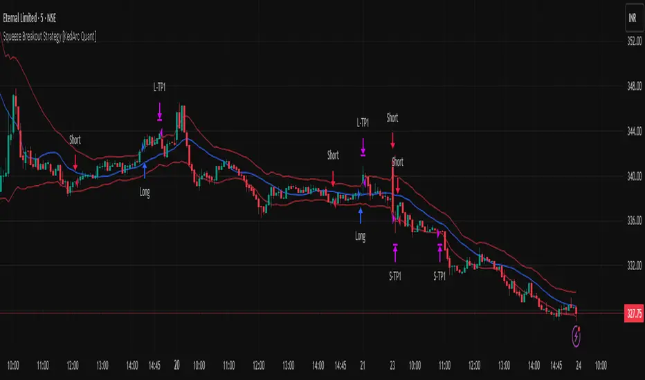 Squeeze Breakout strategy looks for volatility compression (Bollinger Bands inside Keltner Channels = a “squeeze”), then trades the volatility expansion in the direction of a momentum filter.
