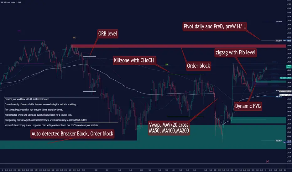 All-in-one professional-grade indicator combining session analysis, key levels, institutional concepts, and trend tools for futures, forex, crypto, and stocks.
