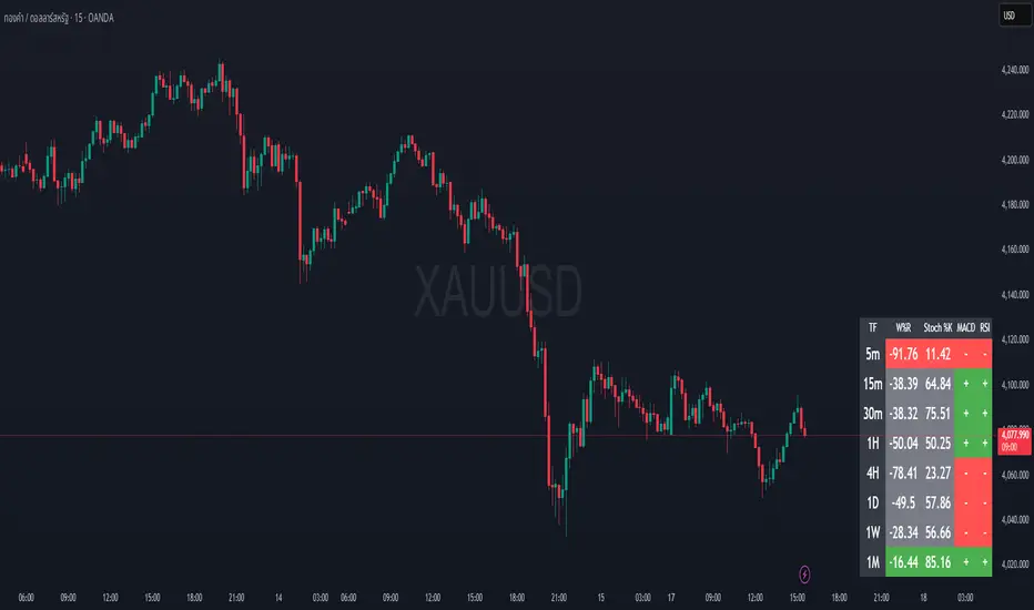 The CG Momentum – Table indicator is a multi-timeframe momentum dashboard designed to help traders quickly evaluate market conditions across eight key timeframes. Instead of combining indicators arbitrarily, this script integrates four different momentum components—Williams %R, Stochastic %K, MACD slope, and RSI vs RSI-SMA trend state—into one unified framework. Each element contributes a unique perspective on momentum behavior, allowing traders to see alignment or divergence across all timeframes in a single glance.