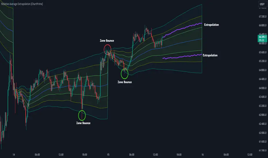 Relative Average Extrapolation (ChartPrime) is an advanced and customizable session average indicator with the ability to estimate the direction and volatility of intra-day sessions. We hope you will find this script fascinating and useful in your trading and decision making. With its unique take on session weighting and forecasting, we believe it will be a secret weapon for traders for years to come.