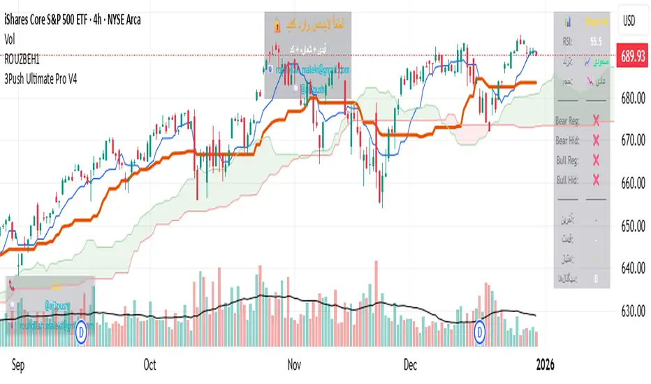 این اسکریپت پیشرفته Pine Script با نام "3Push Ultimate Pro V4" یک اندیکاتور حرفهای شناسایی الگوی سهپوش (3-Push) در بازارهای مالی است.