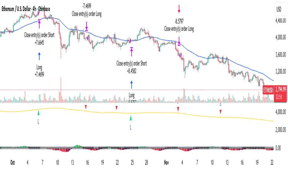 Long Entry (Green Triangle): Momentum crosses above zero + Price > 50 MA