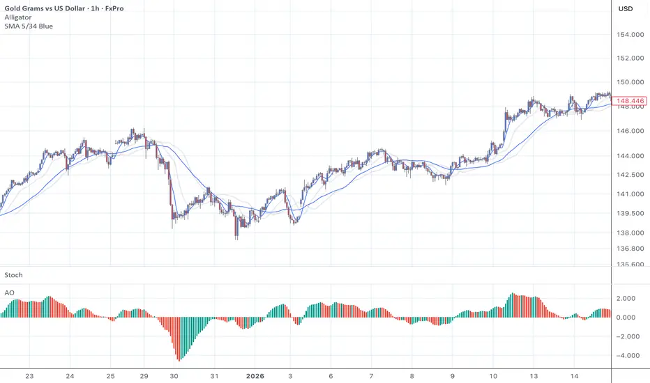 SMA 534 Blue = Awesome Oscillator (AO)
