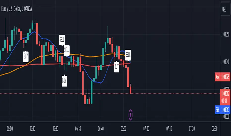 Crossover Detection: ta.crossover and ta.crossunder functions detect when the short moving average crosses above or below the middle moving average and when the middle moving average crosses above or below the long moving average.