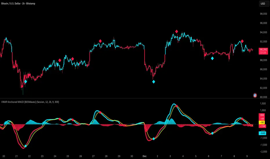The VWAP-Anchored MACD [BOSWaves] is a structural momentum tool designed to enhance directional clarity - not a guaranteed predictor. Performance depends on market regime, volatility, and disciplined execution. Use it alongside broader trend, volume, and structural analysis for optimal results.