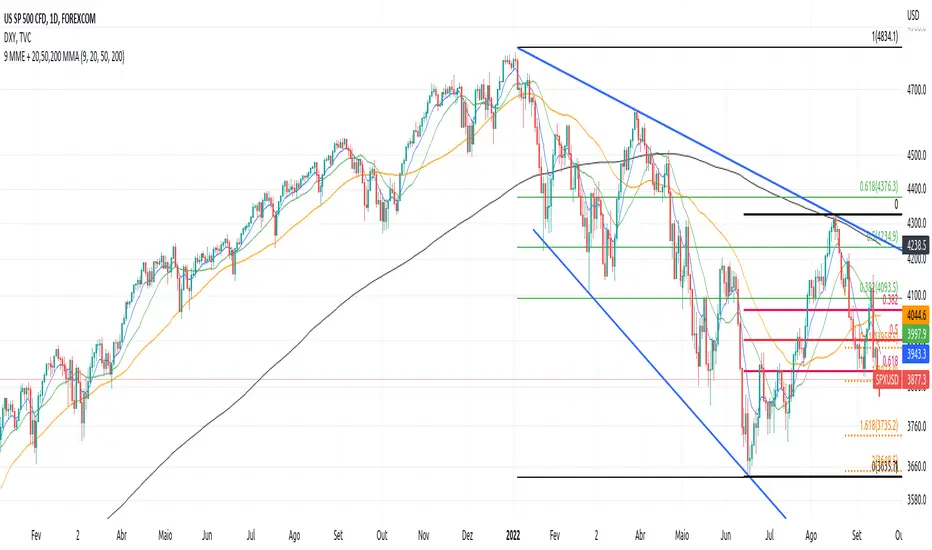 Script que inclui a média móvel de 9 (exponencial), e as médias aritméticas de 20, 50 e 200