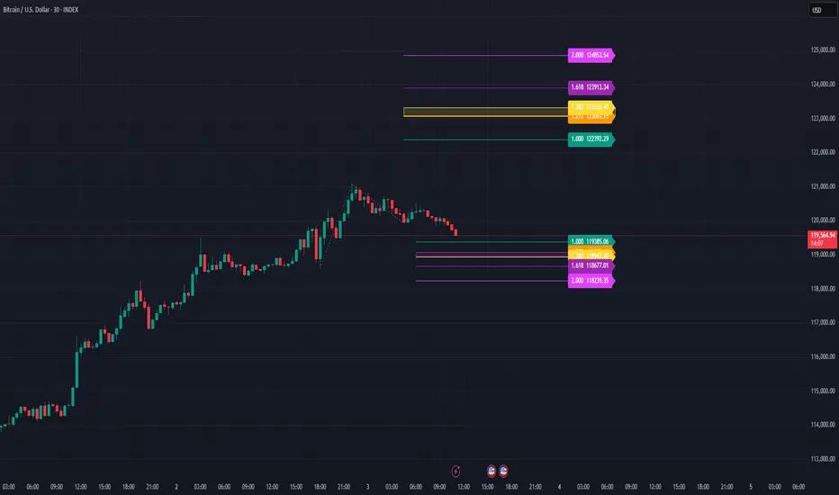 Auto Fib Extension Targets A-B-C is a Pine v6 indicator that projects Fibonacci extension targets from the most recent validated A-B-C swing. It works in both directions and is designed for trend continuation planning and take-profit placement.
