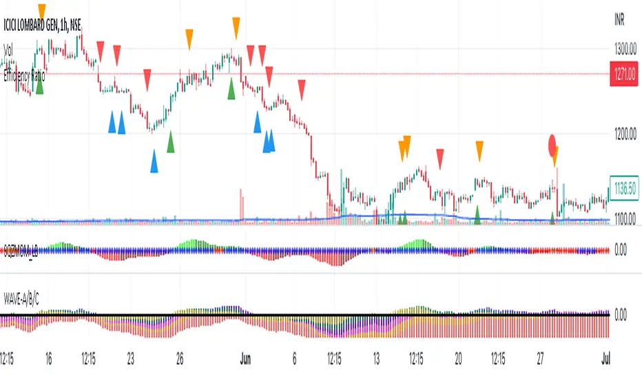 Green Arrow below candle shows ER crosses above 0.6 and Orange on shows it crosses below 0.6.