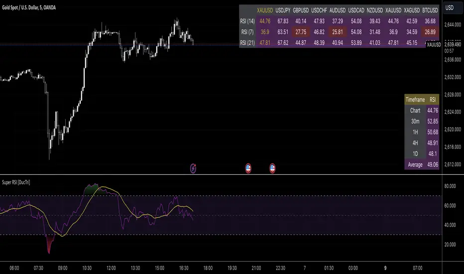 已更新 Super RSI: Multi-Timeframe, Multi-RSI-MA, Multi Symbol [DucTri]