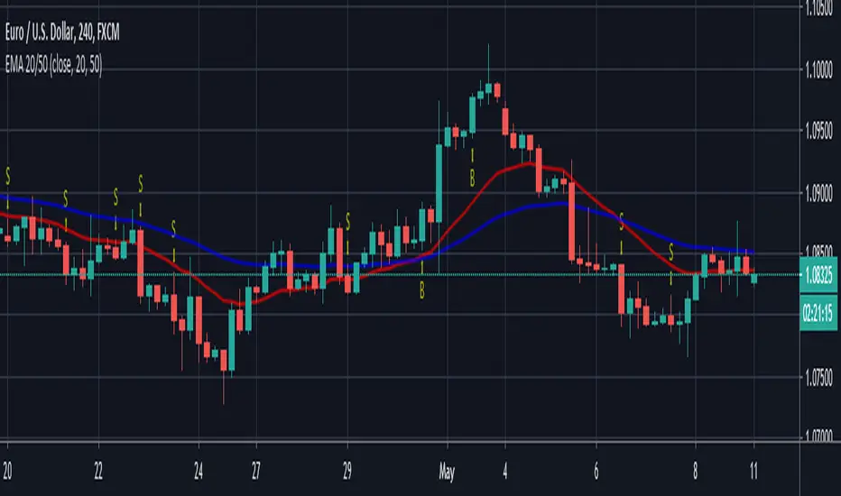 Indicator uses EMA 20 & Ema 50 to determine trend