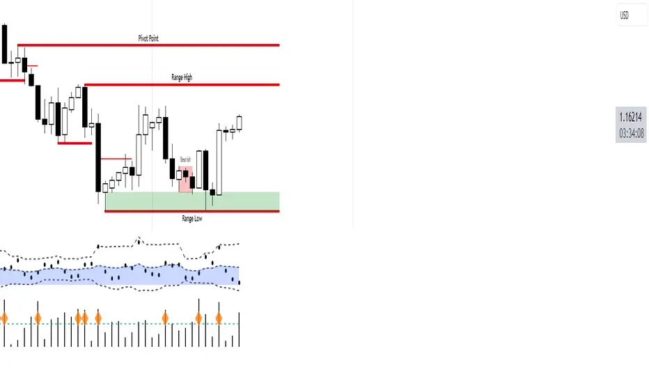 • Optionally marks strong-bodied candles with a green triangle above the bar. (Orange Diamond)