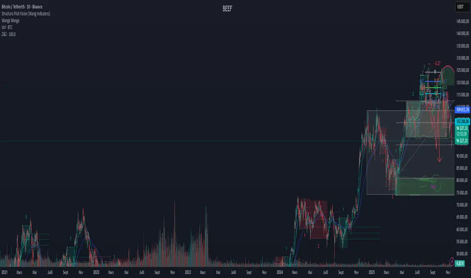 Indeed, if the price is rising and a bullish zone has been created, I don't want to buy on the highs, preferring to wait for a retracement in my bullish zone to buy lower and reduce my risk, as the invalidation of the current trend will be found below the last protected low under the bullish zone drawn in blue for the HTF and in green for the LTF. Conversely, if the price is falling and a bearish zone has been created, I don't want to sell at the bottom. I'd rather wait for a retracement in the bearish zone to sell higher and reduce my risk, as the invalidation of the current trend will this time be above the last protected high above the bearish zone drawn in orange for the HTF and red for the LTF.