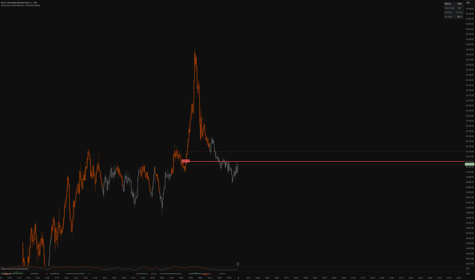 Microstructure Mean Reversion Microstructure Mean Reversion · Execution Levels (MNQ)OverviewThe Microstructure Mean Reversion (MMR) is a tactical execution tool designed specifically for the Nasdaq Micro E-mini (MNQ). Unlike traditional indicators that chase extremes (Highs/Lows), this script identifies Accepted Price Levels within micro-structures to provide high-probability Mean Reversion entries using Limit Orders.It is built for disciplined scalpers who prioritize clean charts and systematic execution over emotional trading.Core Logic: The "Accepted Price" ConceptMost traders focus on candle wicks. This indicator ignores them. It calculates the L0 (Lowest Close) and H0 (Highest Close) over a specific lookback period ($N$) to identify where the market is actually transacting and "accepting" value.Touch Count Validation: A setup only becomes valid if the microstructure has touched the level exactly 2-3 times (user-defined), preventing entries into "over-tested" or "insistent" levels that are likely to break.EMA Filter: Entries are only triggered during a pullback to the EMA 9, provided the price is still protected by the EMA 21 trend.Key FeaturesExecution Modes: Toggle between BUY-only, SELL-only, or BOTH to align the script with your daily bias.Timeframe-Specific Presets: Automatically adjusts parameters (Lookback, Tolerance, Entry Offset, and EMA Distance) for 30s, 1m, 2m, 3m, and 5m charts.Real-Time Performance Monitor: An on-chart dashboard tracks Win Rate, Total Trades, and Max Loss Streak during your session or Bar Replay.Tactical Visuals: Clean, professional interface showing only the active Buy/Sell Limit (BL/SL), Take Profit (TP), and Stop Loss (SL) levels.Execution Parameters (Optimized for MNQ)Contracts: 35 (Scalp model)Take Profit: +3.25 pts ($220)Stop Loss: -9.50 pts ($650)Entry: Limit Orders only (No Market/Stop chasing).How to UseSelect Bias: Set the Execution Mode based on your higher timeframe analysis.Wait for Setup: The script will draw the Limit Level (Green for Buy, Red for Sell) when micro-structure acceptance and weakness are confirmed.Execute: Place your Limit Order at the BL/SL line.Manage: The script automatically hides the setup once the TP or SL is hit to keep your workspace clutter-free.Disclaimer: This is an execution aid for manual trading. It does not execute trades automatically. Always trade within your risk management rules.