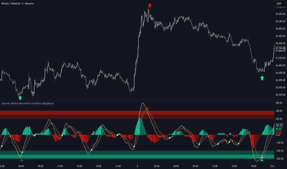 Dynamic Median Momentum Oscillator [AlgoAlpha]🟠 OVERVIEW