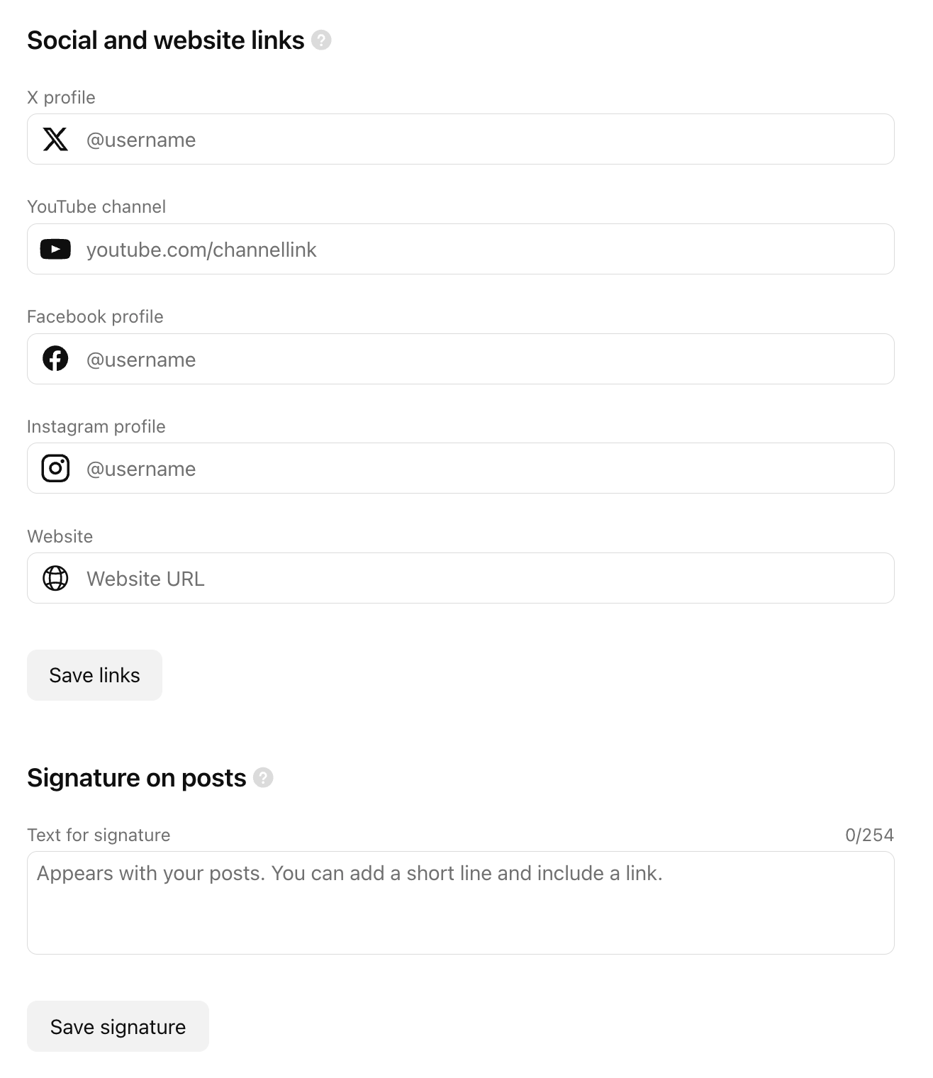 您发布的每个观点/脚本下都会出现指向您社交媒体资料的链接。