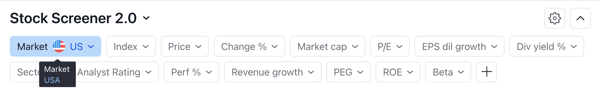 在股票筛选器中,选择地球或国家/地区旗帜图标。