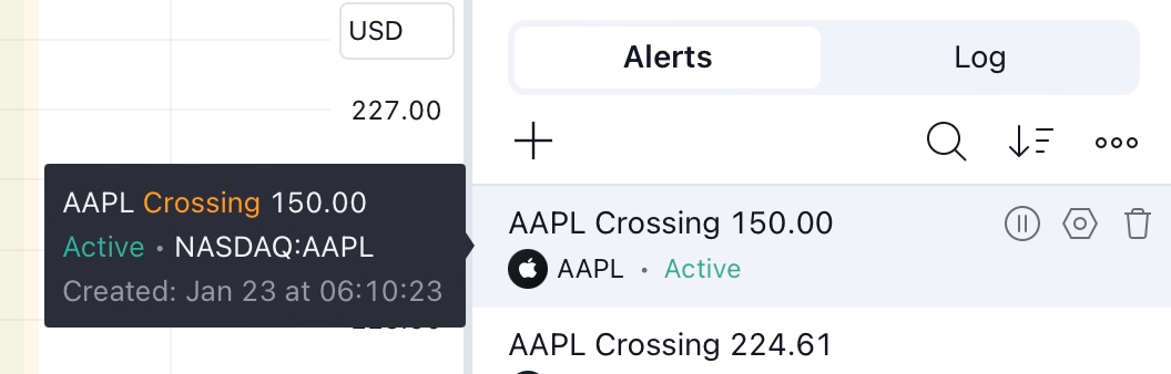 如您所见,如果基于非实时数据商品设置警报,则警报线将不会显示在等效的实时数据商品上。