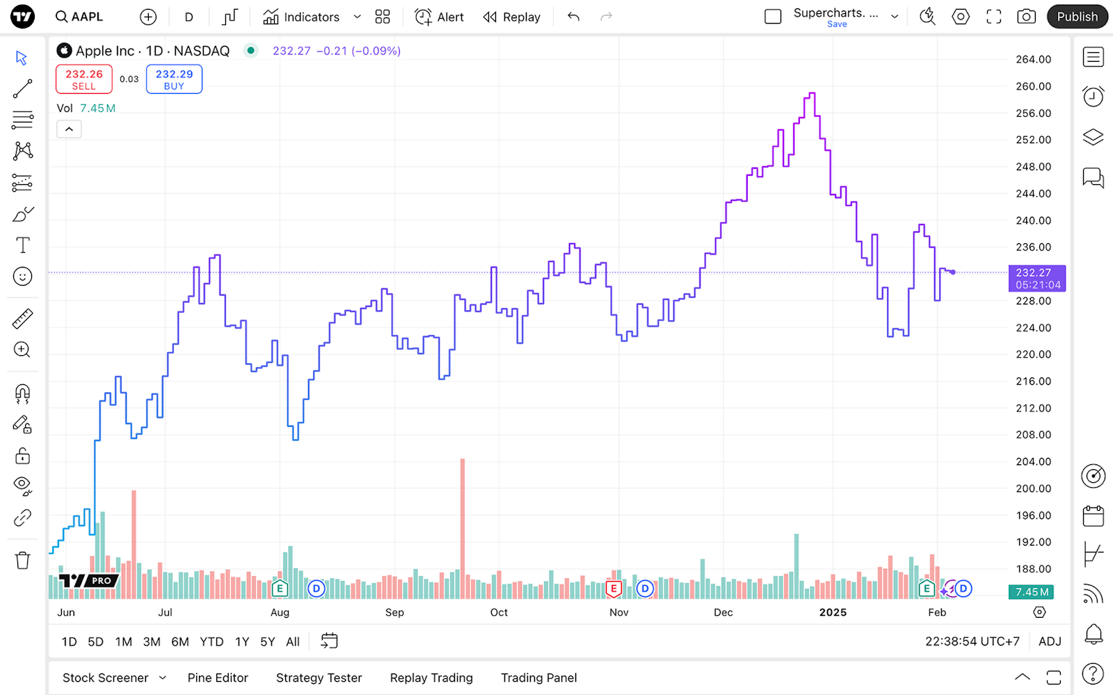 阶梯线图是一种线形图,但与原始线形图不同,它具有阶梯状的可视化效果。在这里,数据点与水平线和垂直线相连,形成代表特定时间周期价格的阶梯。