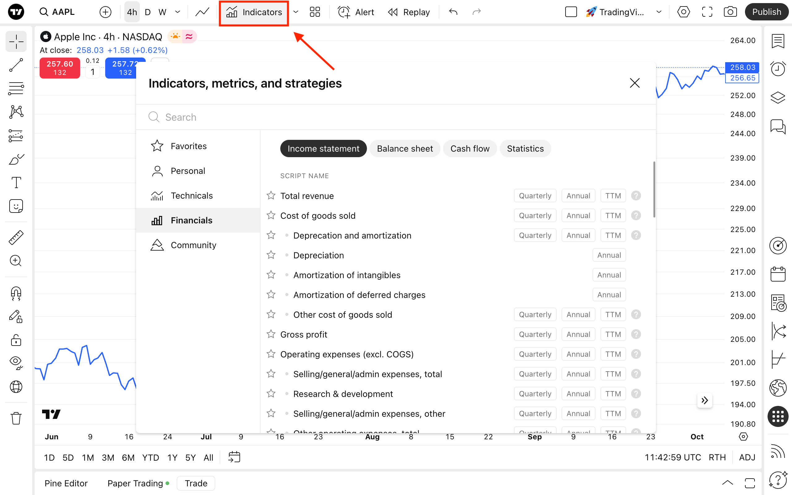 • 开始输入商品代码。例如,要打开苹果公司的股票图表,只需输入“AAPL”。