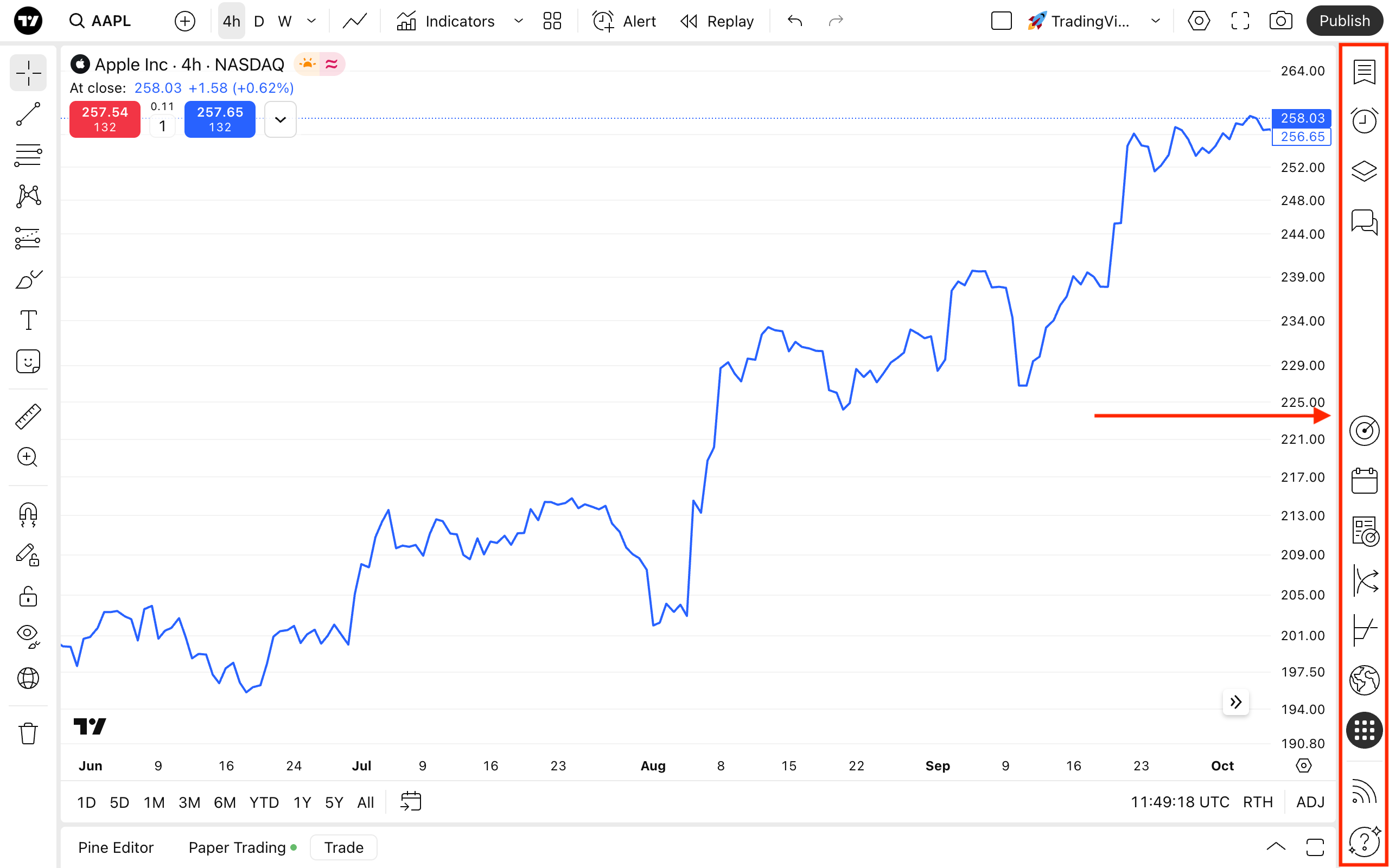• 筛选器:打开和切换TradingView筛选器以浏览市场而无需离开图表。