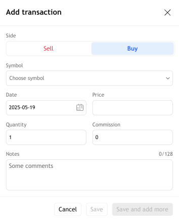 - 数量 — 买入/卖出的单位数量。即使资产以手为单位交易,也必须以实际单位输入。