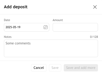 - 存款——表示资金流入账户的交易。它会增加可用于交易工具的自由现金量。
