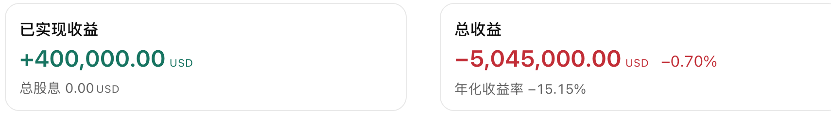 总收益百分比是使用时间加权收益 (TWR) 方法计算的投资组合整体收益。此指标有助于评估用户策略的表现。