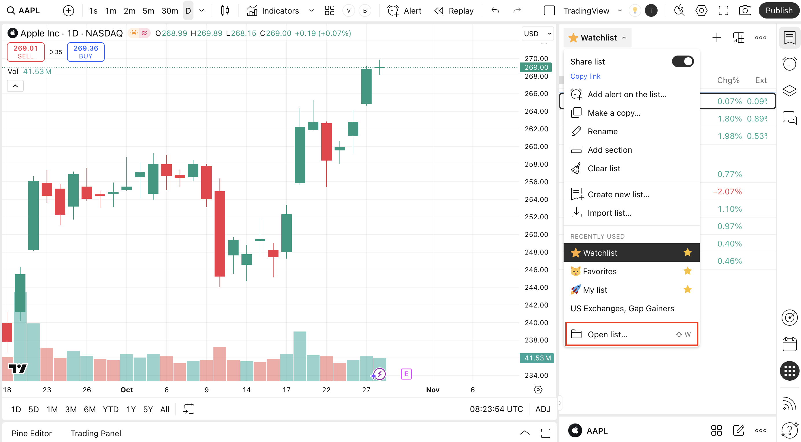 如果您想使用TradingView自选表的所有功能,请复制热门列表并将其用作您自己的自选表的模板。