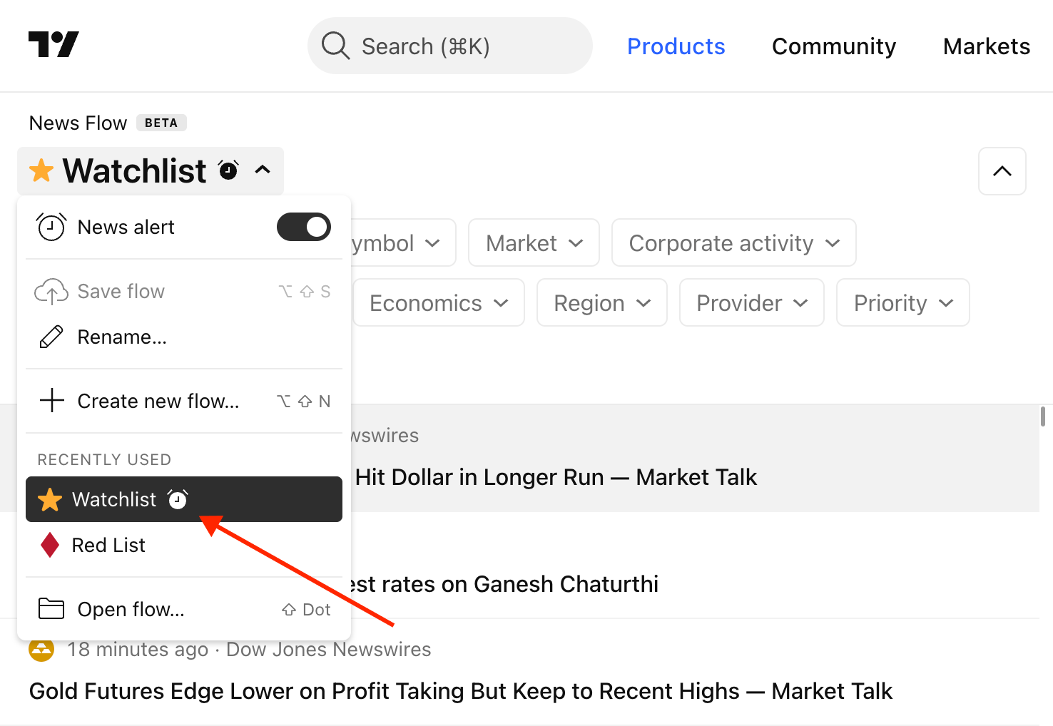 使用新闻警报,您可以根据已保存的新闻流程创建警报。