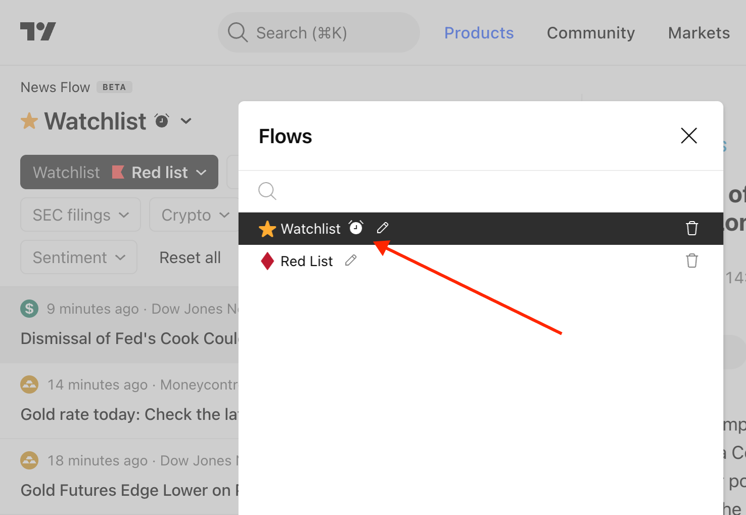 要创建警报,请在流程菜单中切换“新闻警报”按钮。